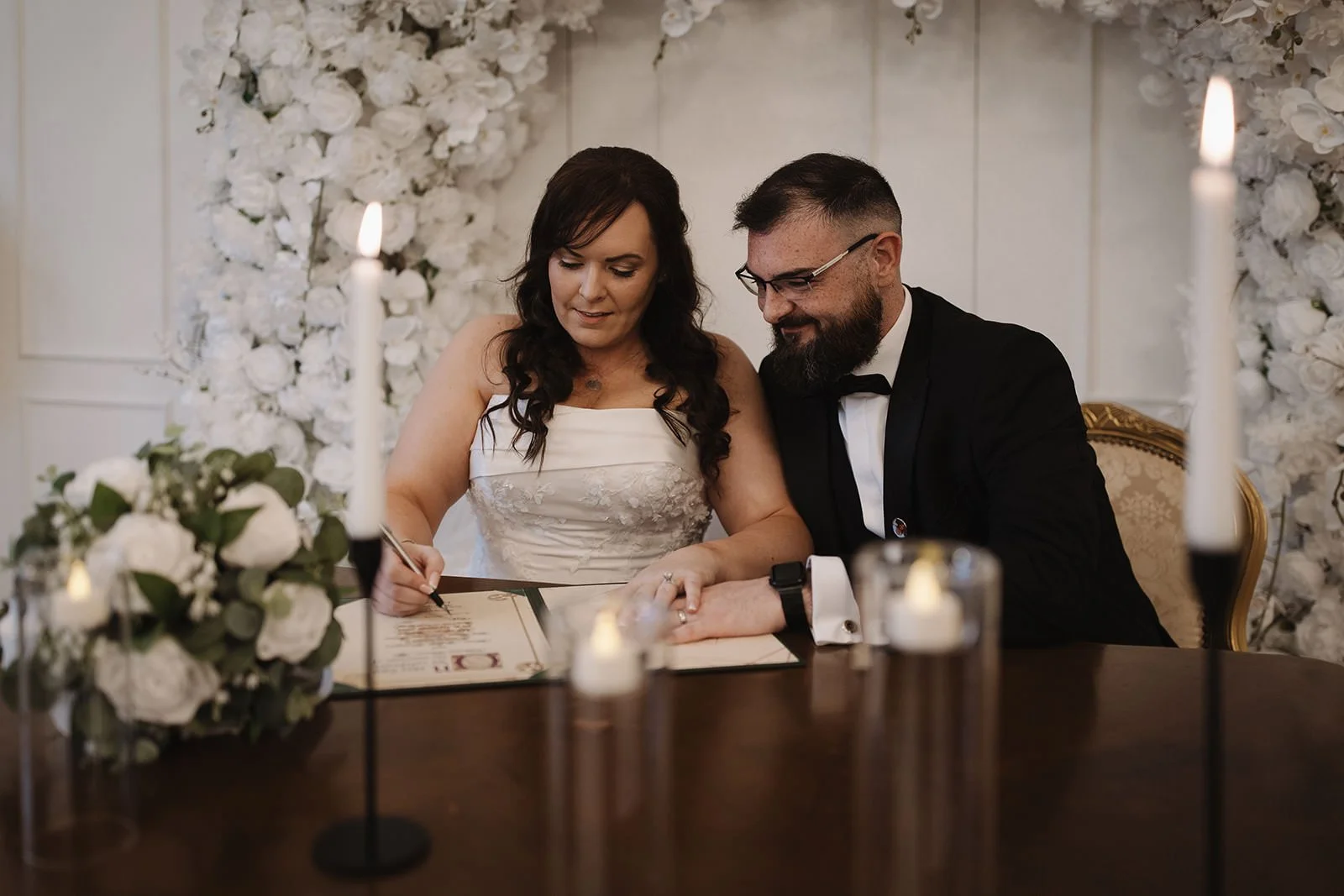 Indoor ceremonies at West Tower feel elegant and timeless. The light is soft, the space is intimate, and the atmosphere feels focused and calm.