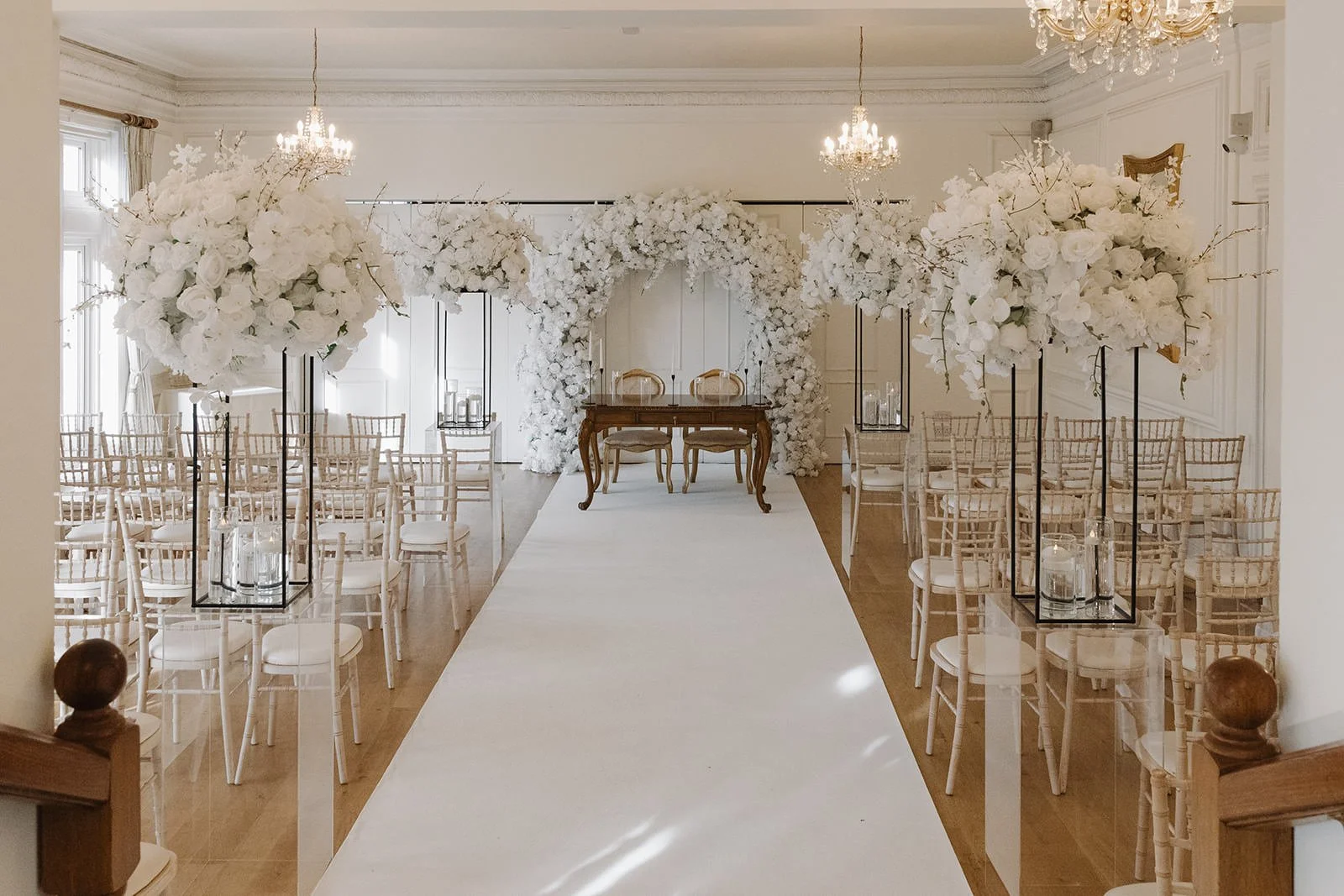 All aisle display items will be relocated to your wedding breakfast area at no extra cost, creating a seamless transition from ceremony to dining.